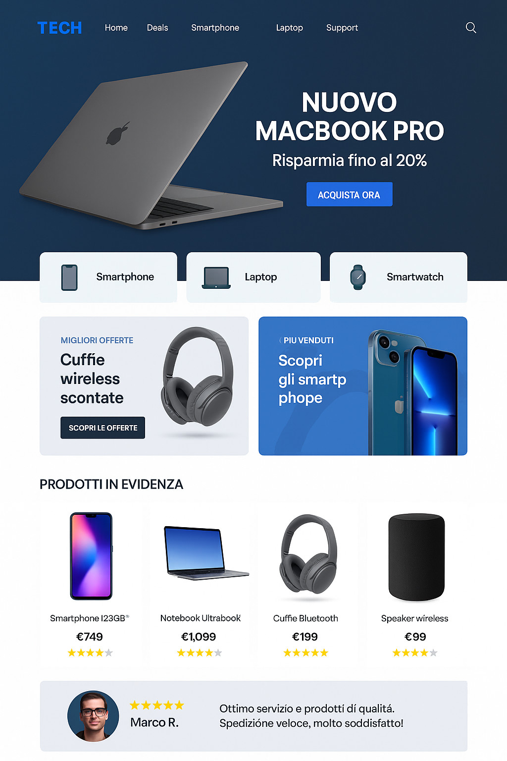 - (-150€) Template gratuito realizzato da zero, seguendo idee o spunti del cliente